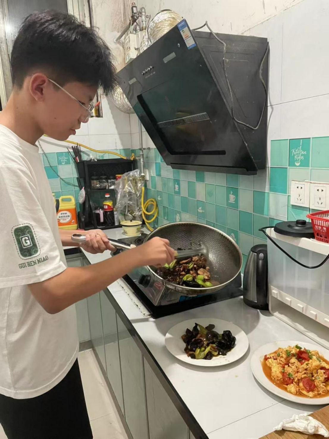 活动中,学生们纷纷“变身”家庭主厨,一展身手。从食材的精挑细选、用心洗切,到煎炒烹炸蒸煮的娴熟操作,再到菜肴的匠心摆盘,每一个环节都展现了餐旅系学生扎实的专业技能与精益求精的工匠精神。厨房里忙碌的身影,是专业技能最生动的实践;餐桌上色香味俱全的佳肴,是孩子们献给父母最温暖、最诚挚的中秋献礼。
